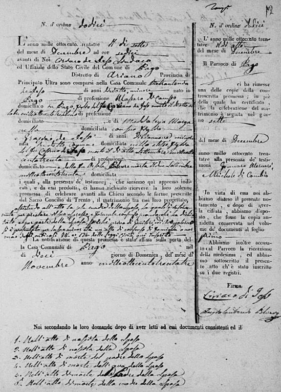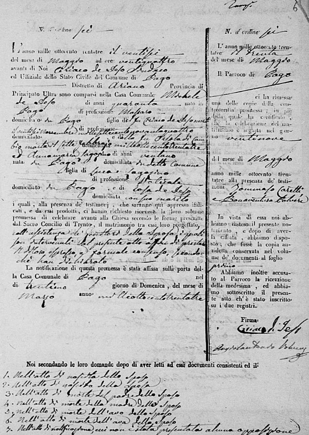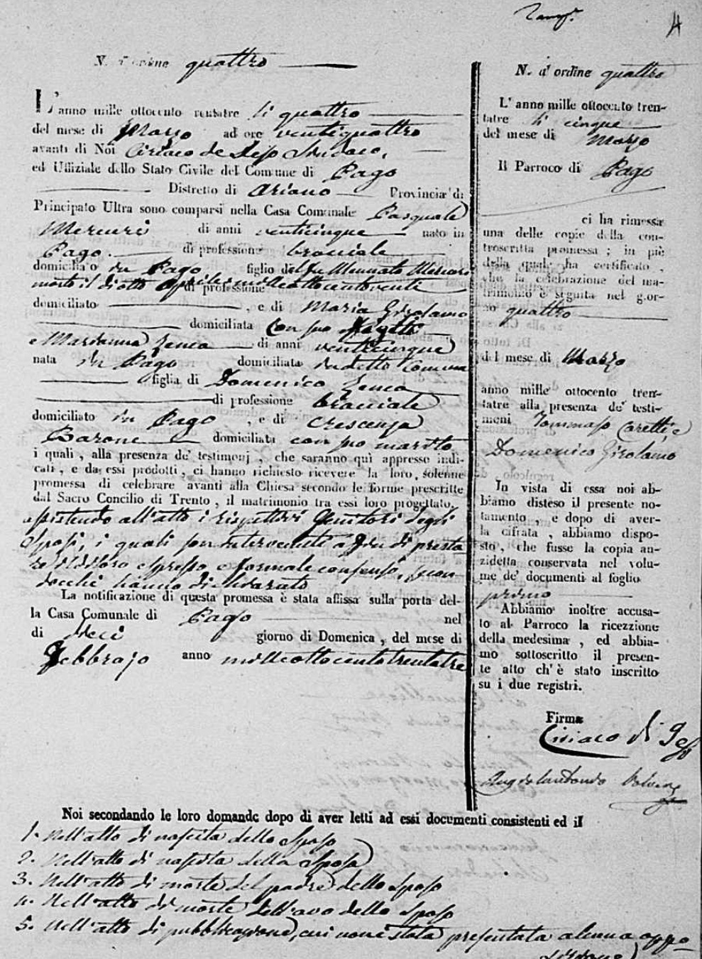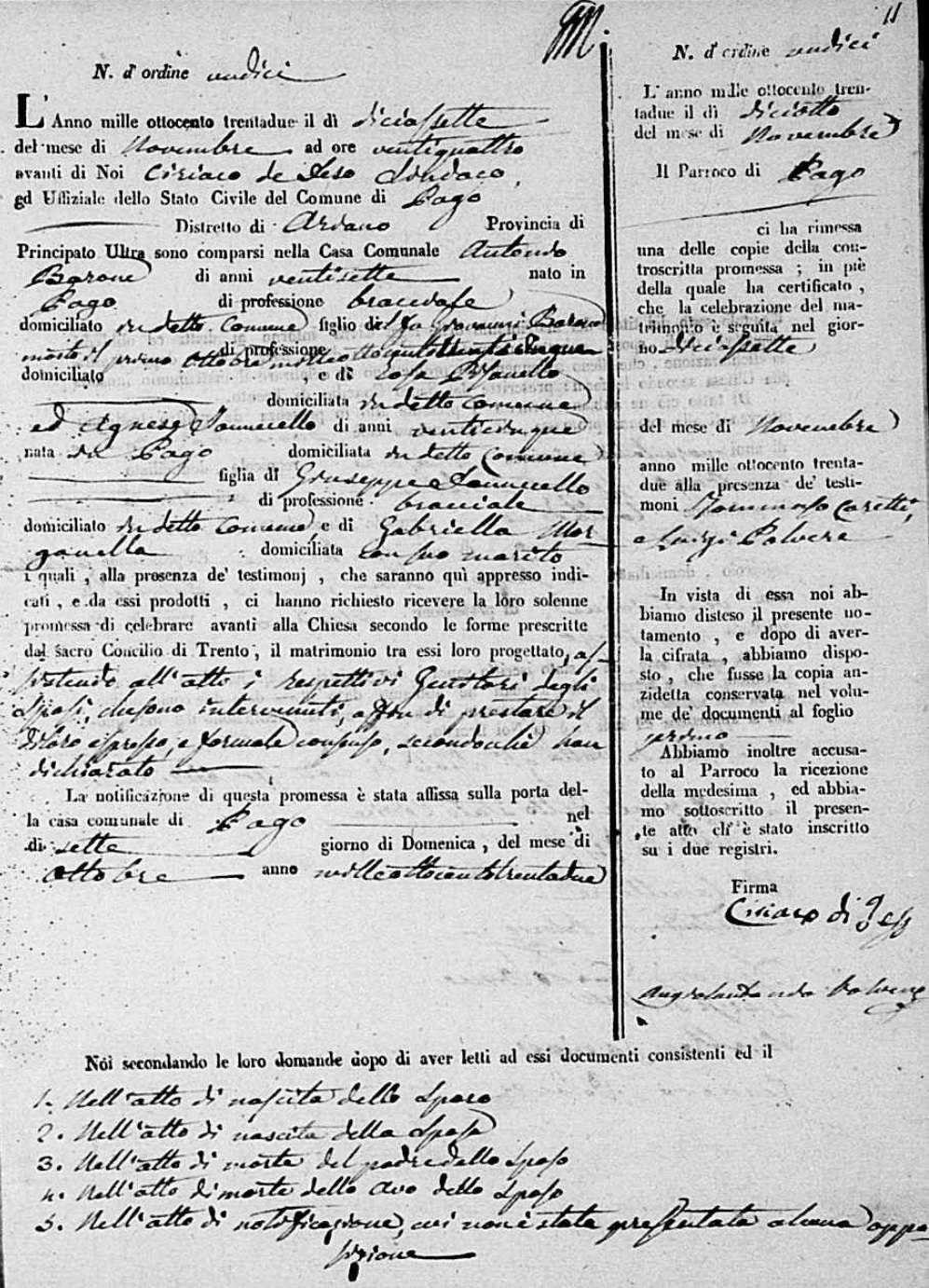 Marianna Zenca were married on March 4, 1833 in Pago Veiano, Benevento, Campania, Italy. He died in Italy.