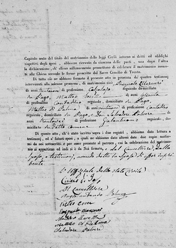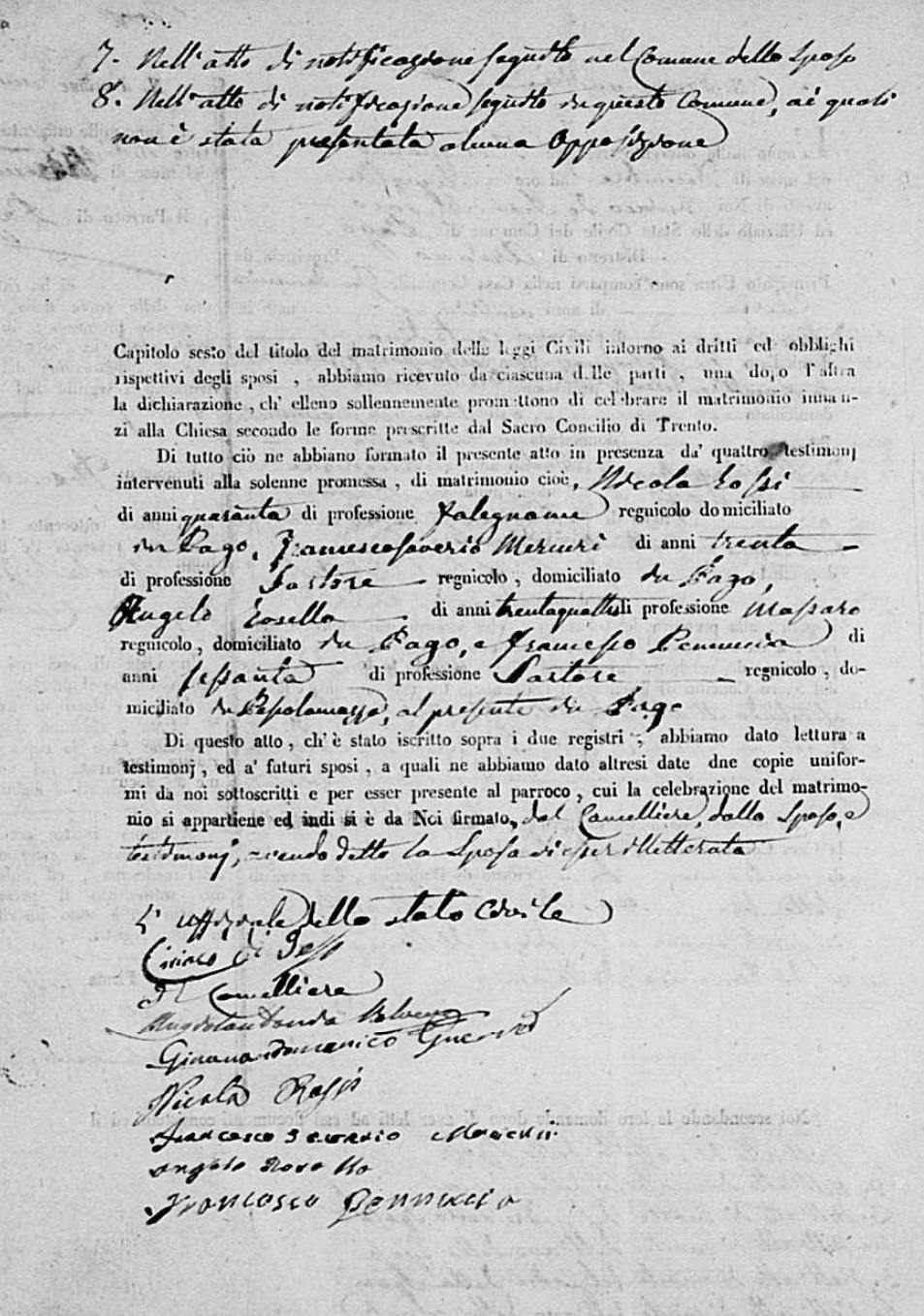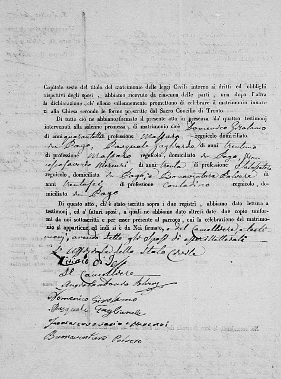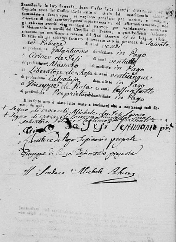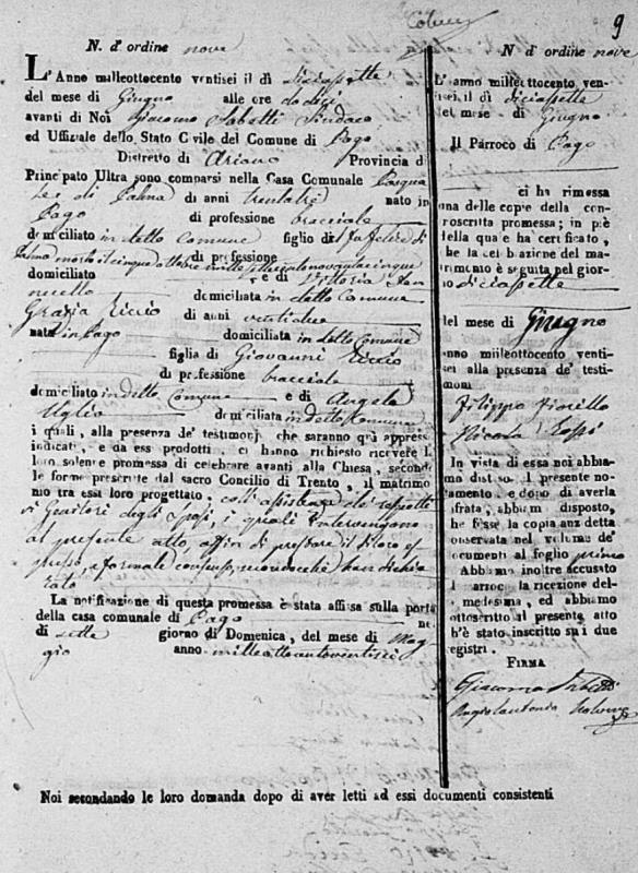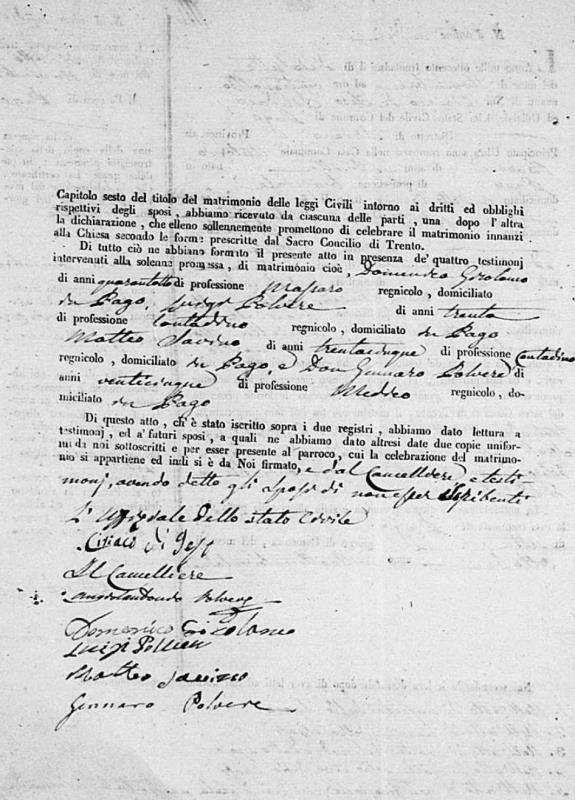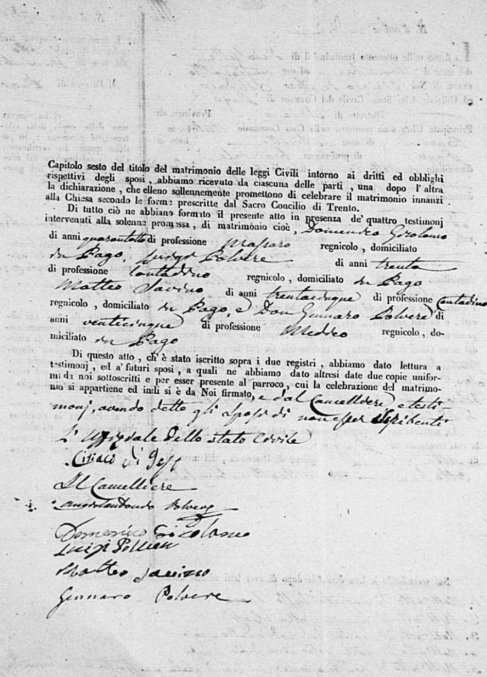 Pasquale Di Palma were married on June 17, 1826 in Pago Veiano, Benevento, Campania, Italy. She and