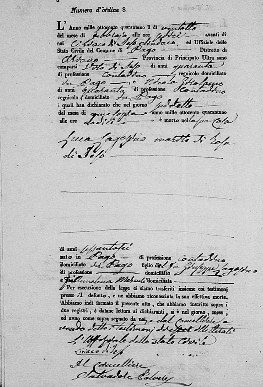 Maria Girolamo were married. He died on April 8, 1820 in Pago Veiano, Benevento, Campania, Italy.