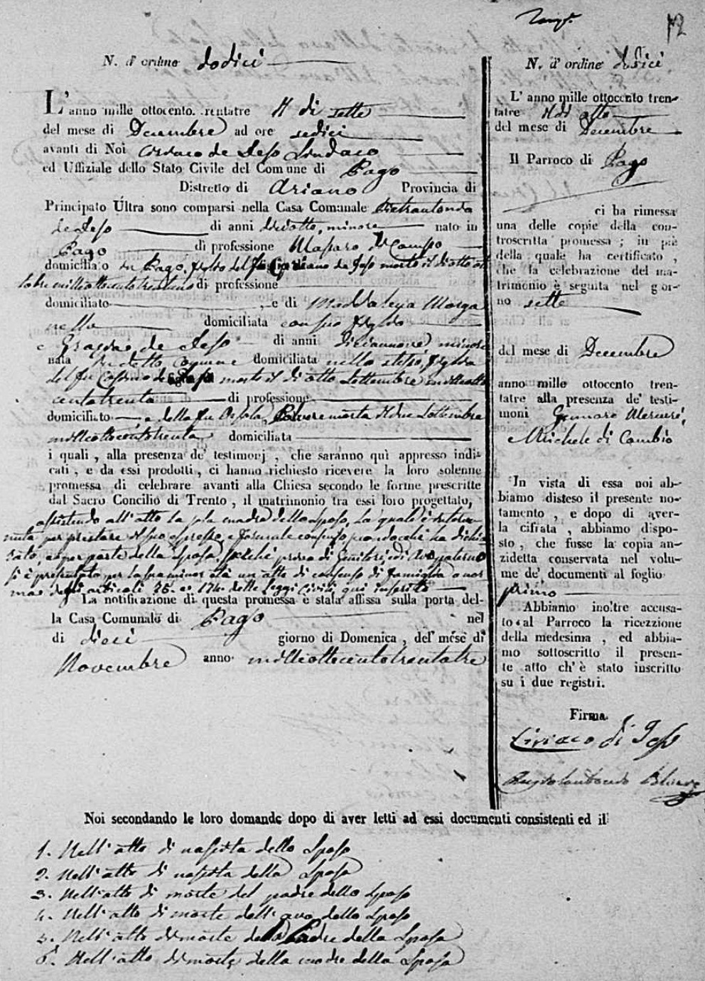 Grazia De Ieso were married on December 7, 1833 in Pago Veiano, Benevento, Campania, Italy. He died in Italy.
