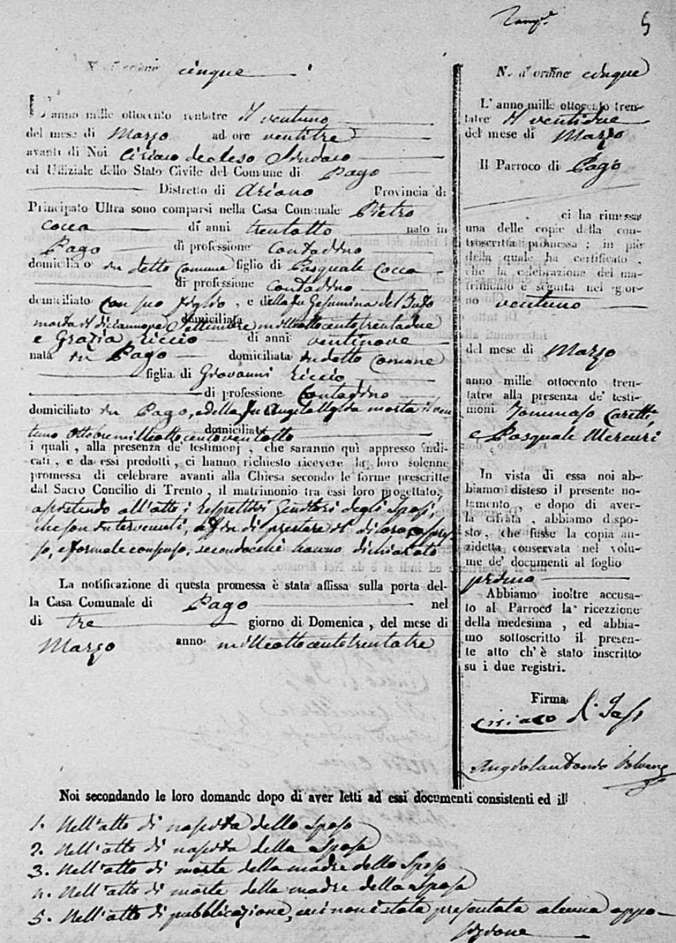 Pietro Cocca were married on March 21, 1833 in Pago Veiano, Benevento, Campania, Italy. She died in Italy.