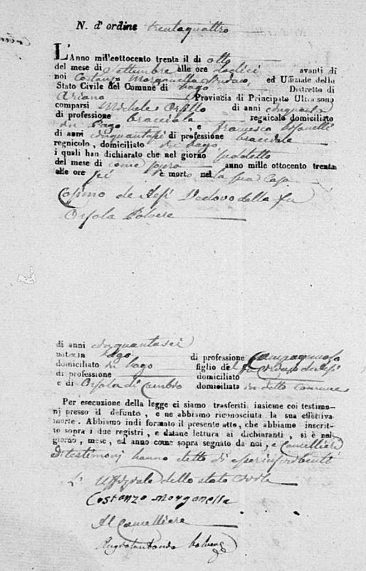 Caterina Morganella were married. He died on October 25, 1815 in Pago Veiano, Benevento, Campania, Italy.