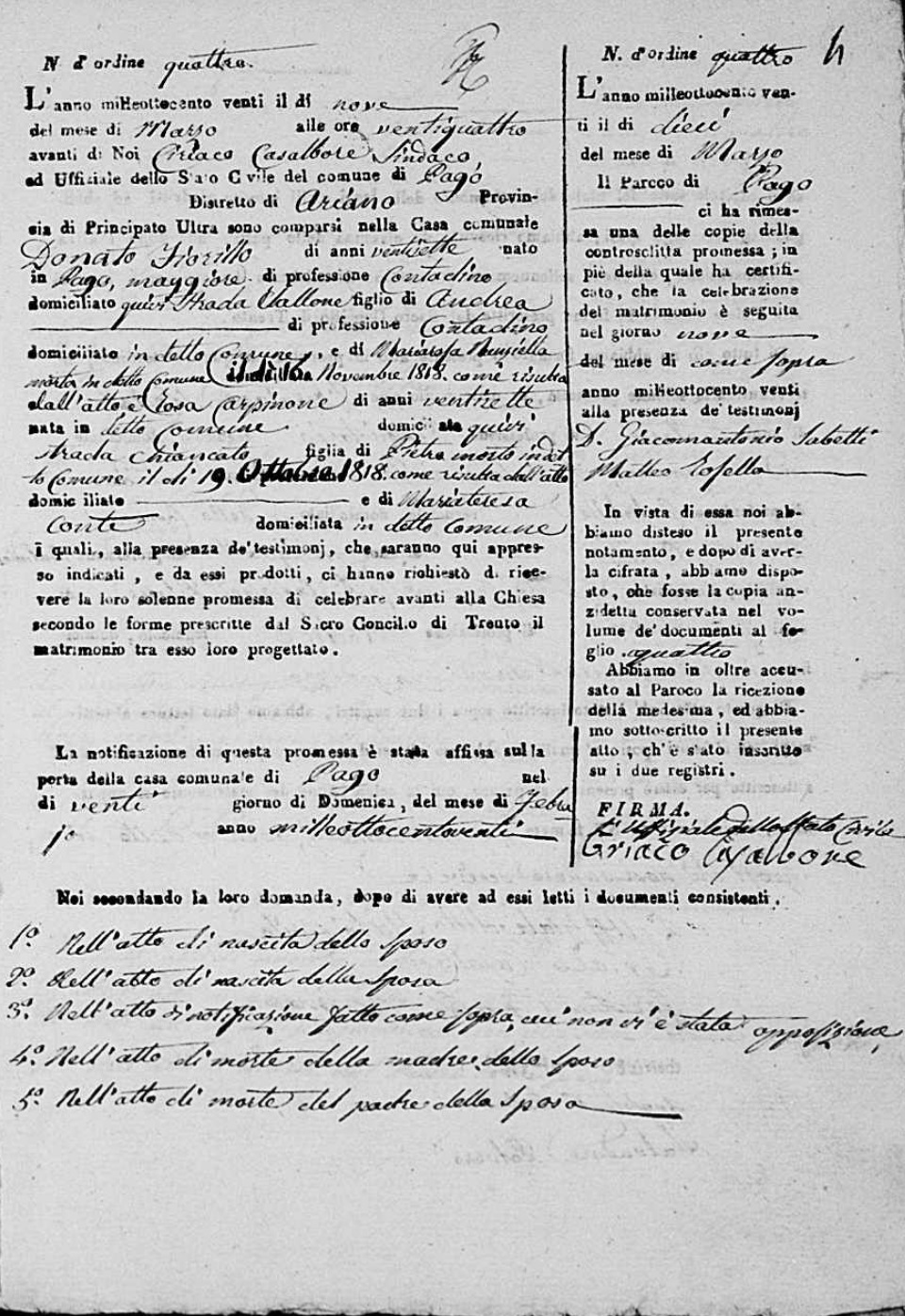 Donato Fiorillo were married on March 10, 1820 in Pago Veiano, Benevento, Campania, Italy. She died in Italy.