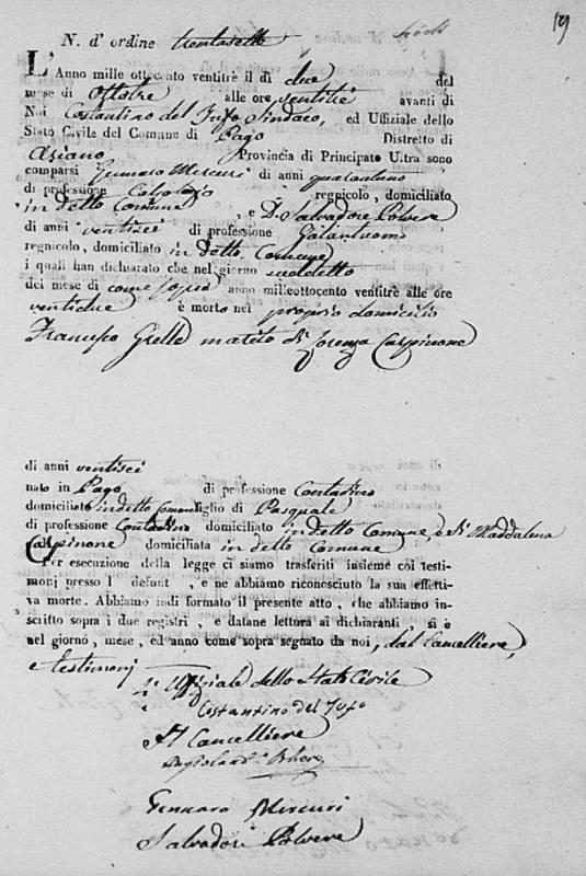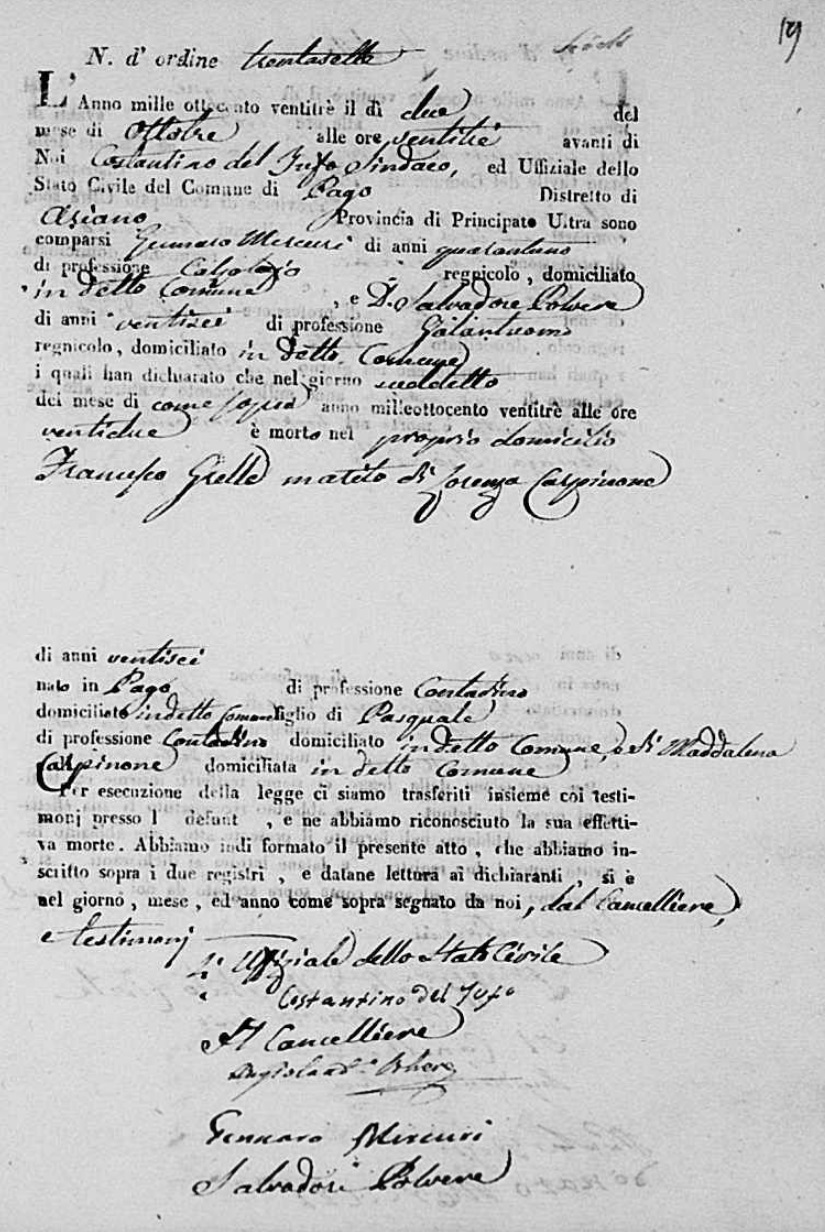 Francesco Grelle was born in 1798 in Pago Veiano, Benevento, Campania, Italy. He and