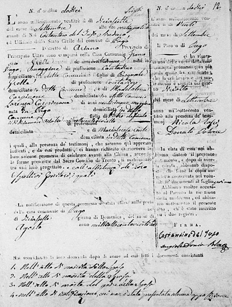 Michelina De Ieso were married on February 16, 1822 in Pago Veiano, Benevento, Campania, Italy. He died in Italy.