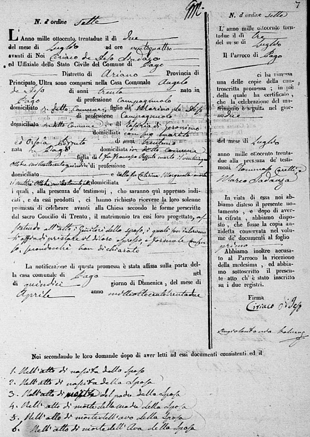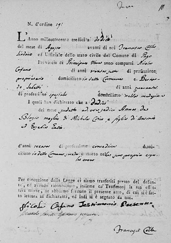 Donato Fiorillo was born in 1793 in Pago Veiano, Benevento, Campania, Italy. He and