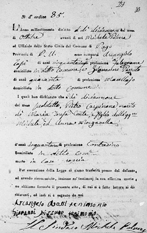 Orsola Pezzuto were married on February 15, 1820 in Pago Veiano, Benevento, Campania, Italy. He died in Italy.