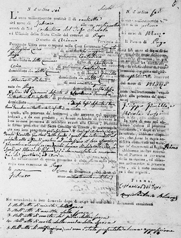 Domeicantonio Fiorillo were married on February 15, 1820 in Pago Veiano, Benevento, Campania, Italy. She died in Italy.
