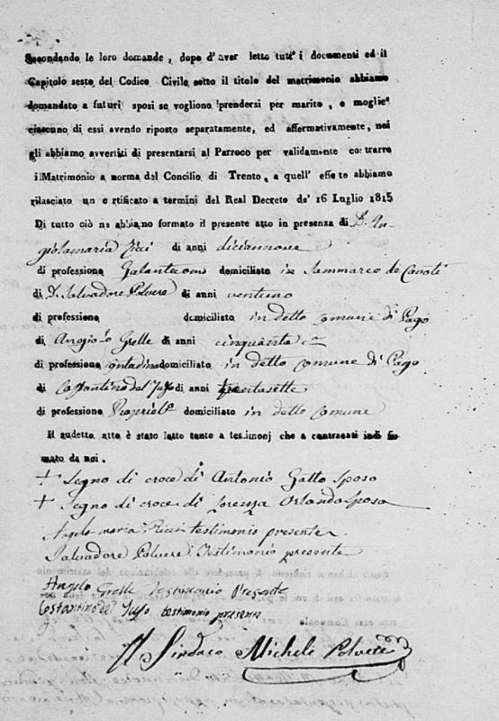 Antonio Gatto were married on February 22, 1819 in Pago Veiano, Benevento, Campania, Italy. She died in Italy.