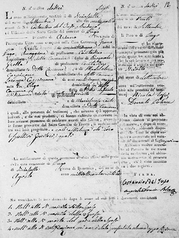 Francesco Grelle were married on September 20, 1823 in Pago Veiano, Benevento, Campania, Italy. She died in Italy.