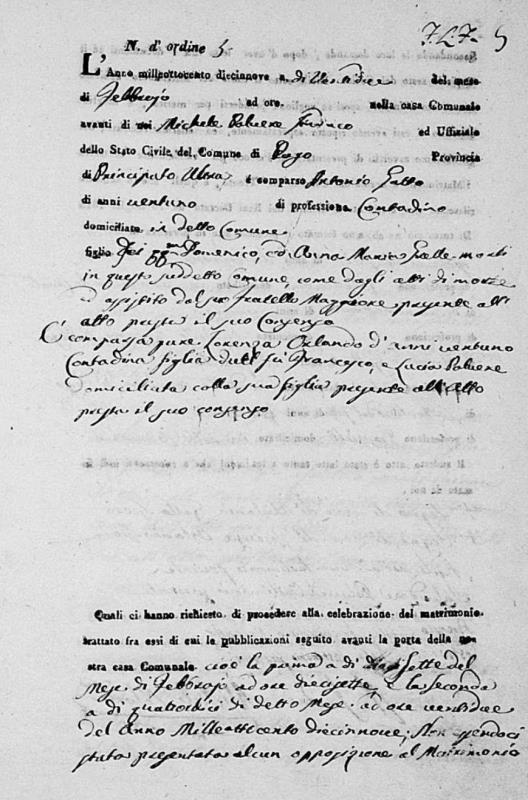 Lorenza Orlando were married on February 22, 1819 in Pago Veiano, Benevento, Campania, Italy. He died in Italy.