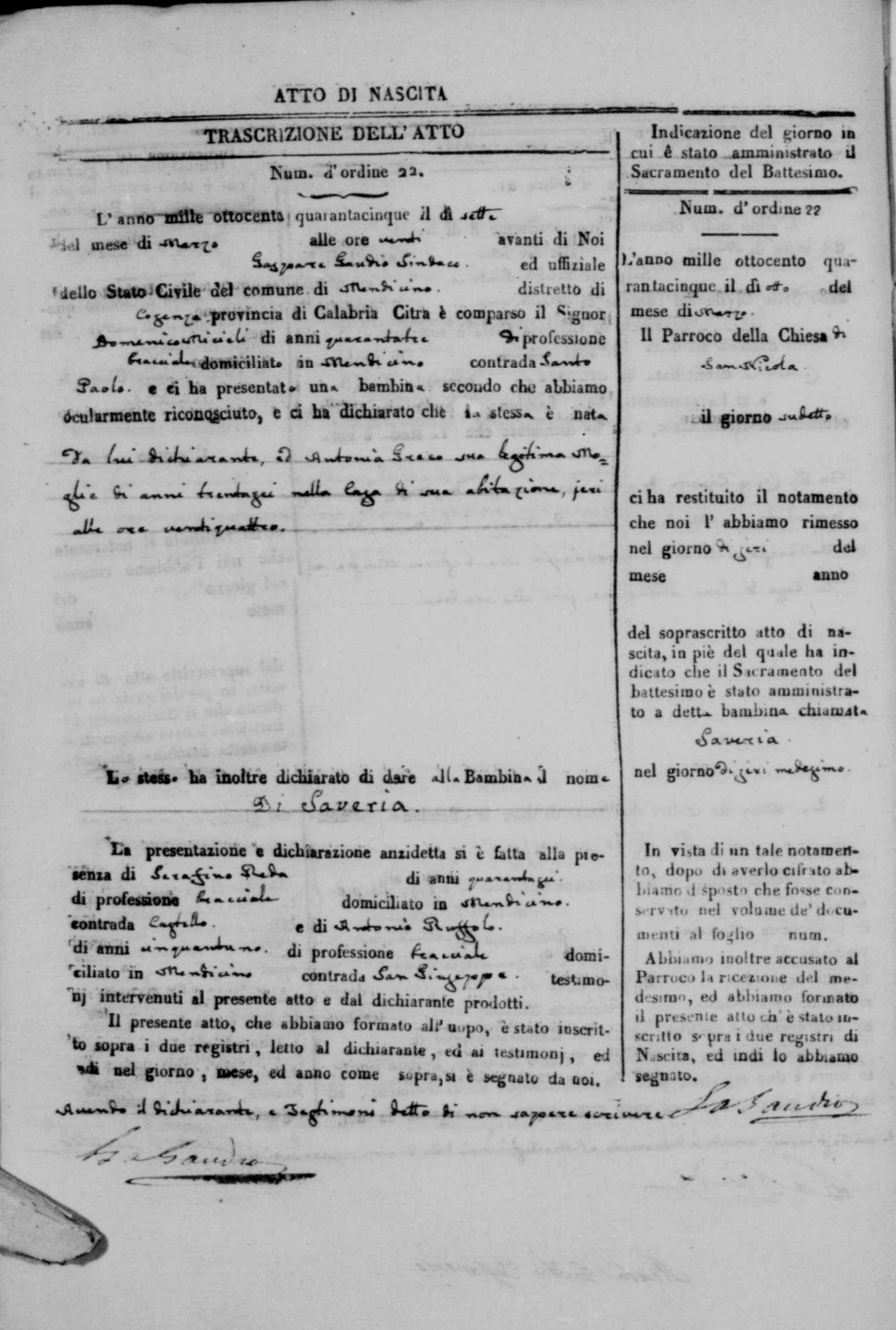 Saveria Micieli was born on March 7, 1845 in Mendicino, Cosenza, Calabria, Italy. She died.
