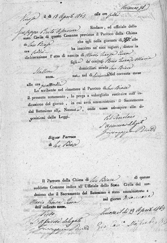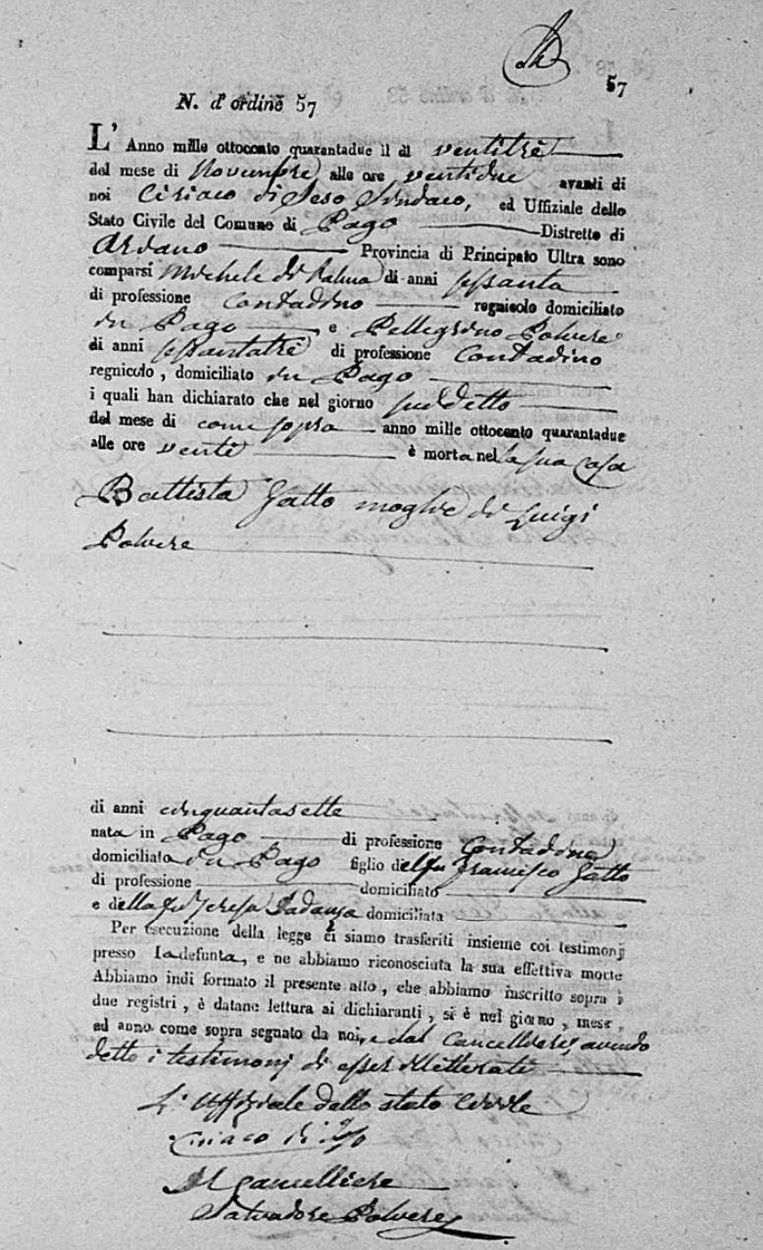 Battista Gatto was born in 1785 in Pago Veiano, Benevento, Campania, Italy. She and