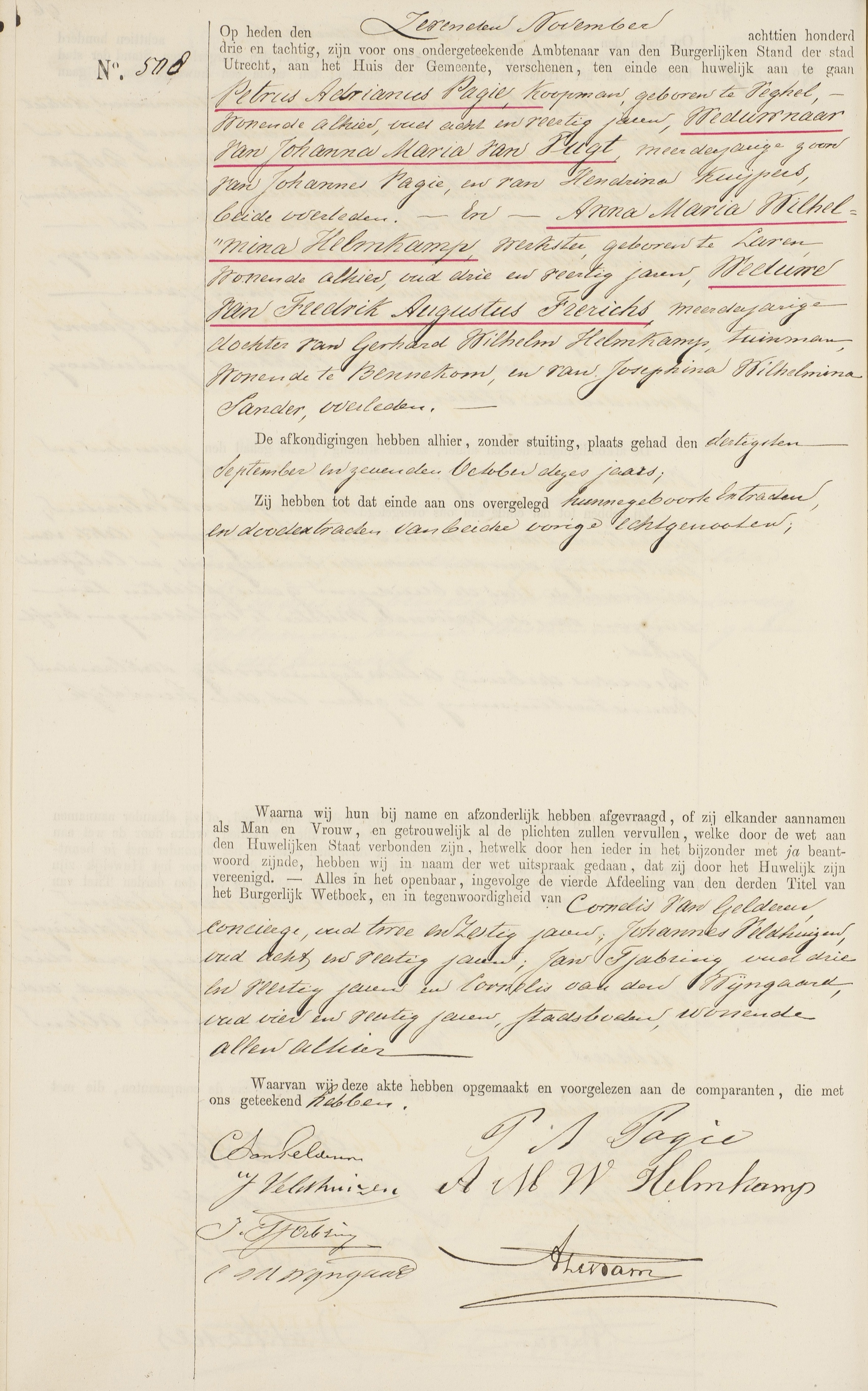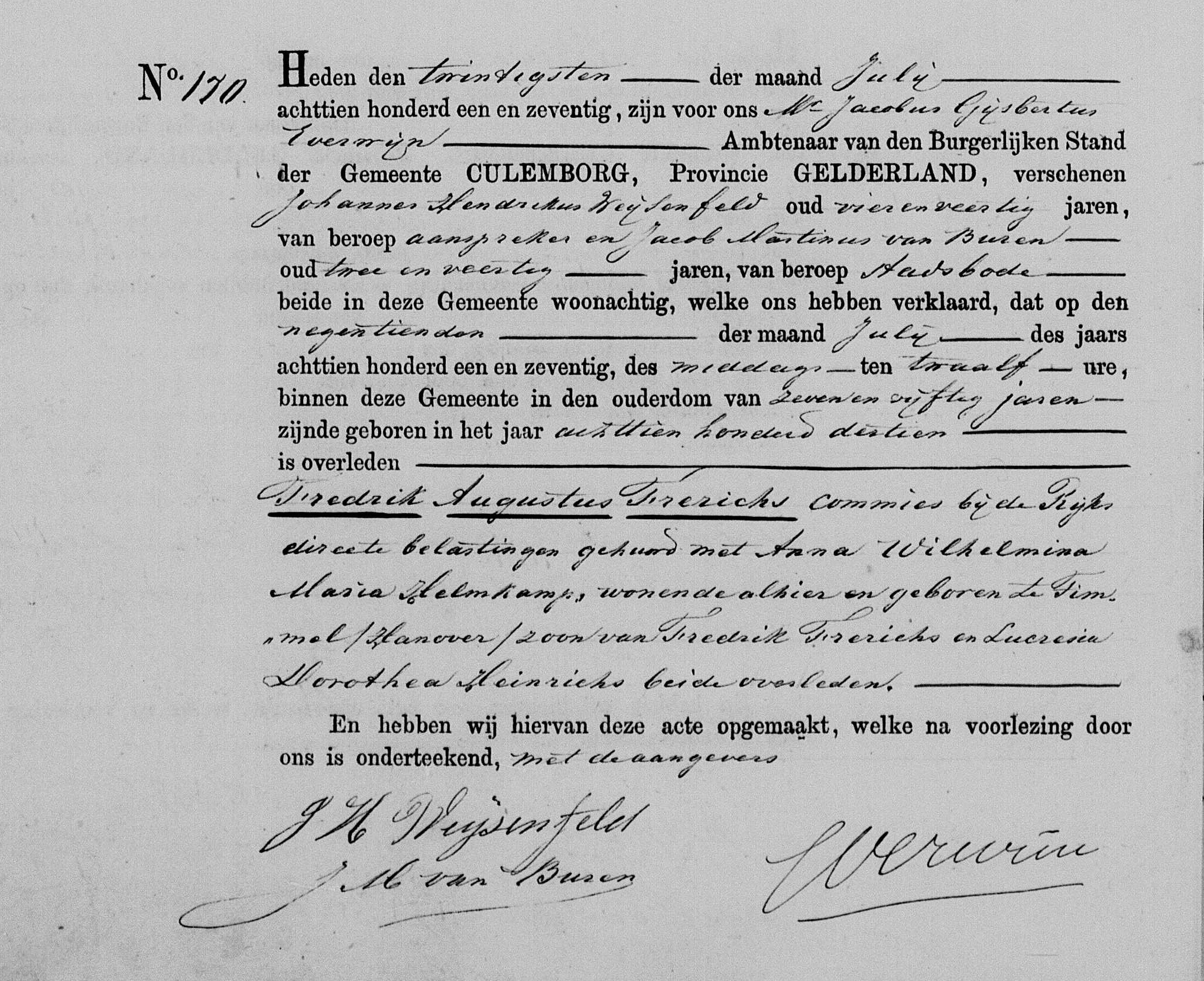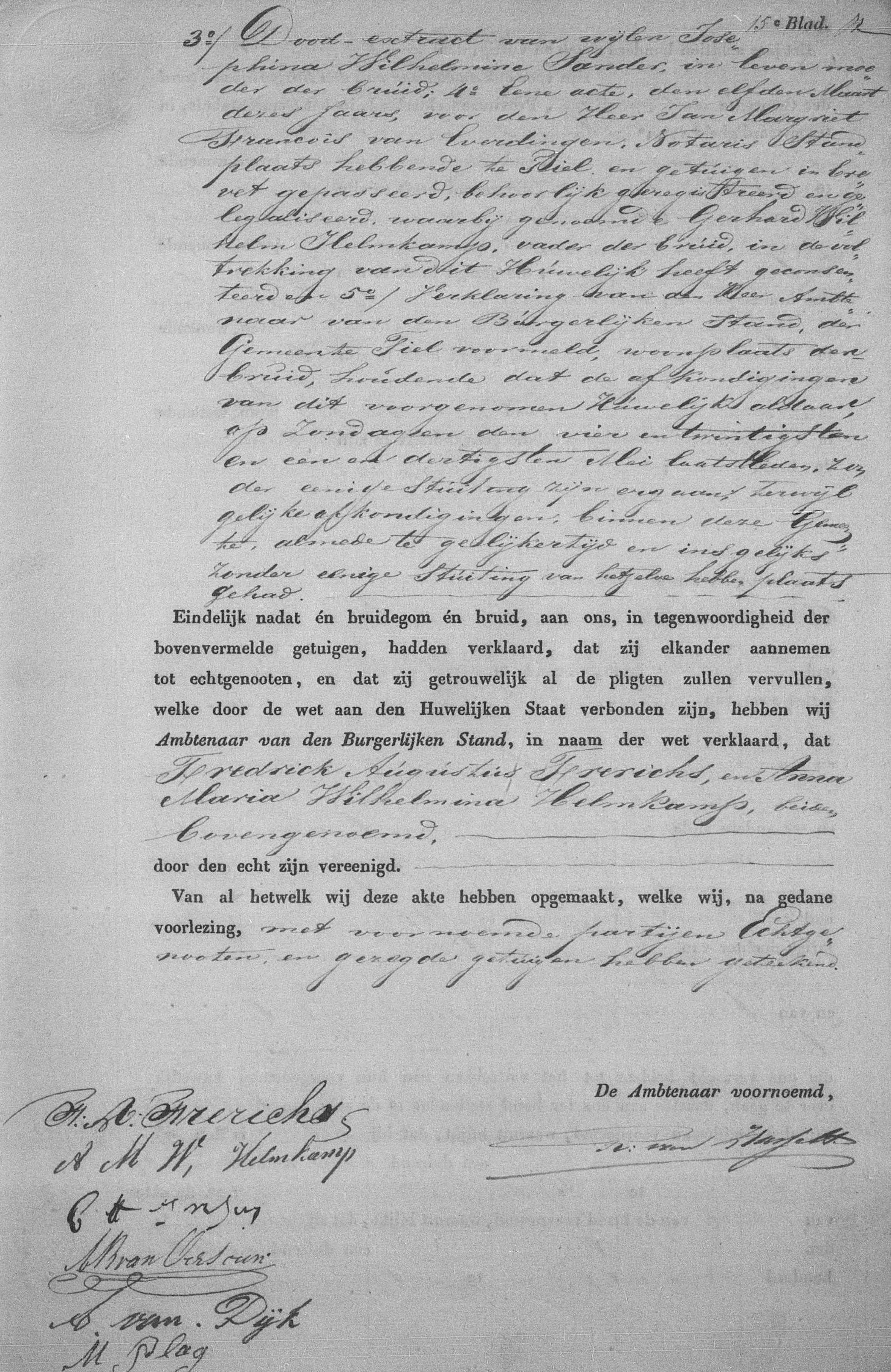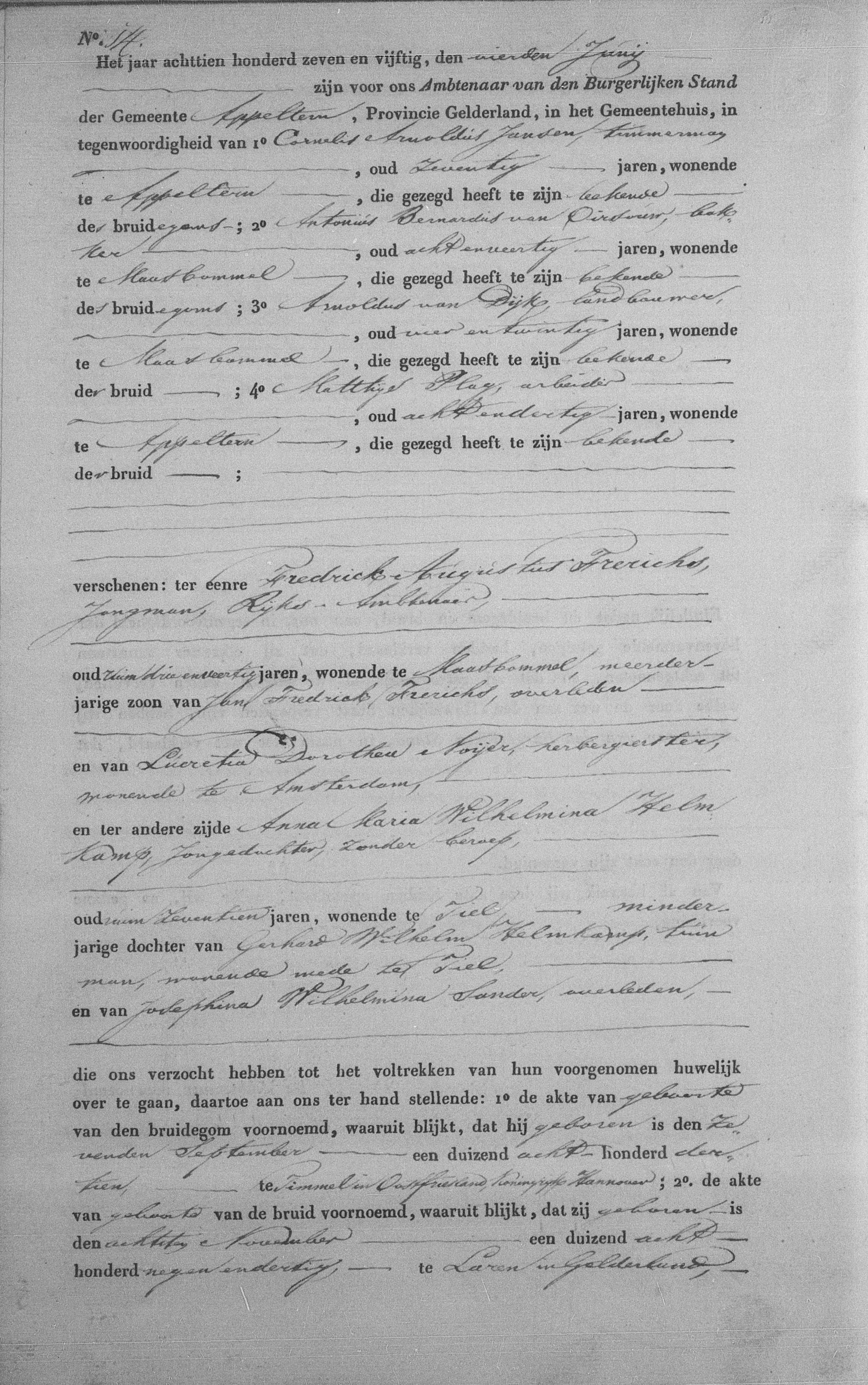 Fredrick Augustus Frerichs were married on June 4, 1857 in Appeltern, Gelderland, Netherlands. She and