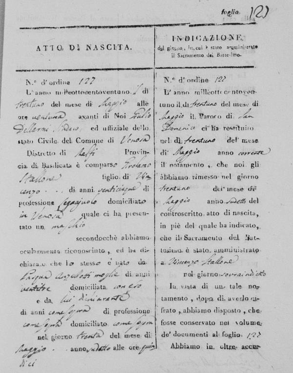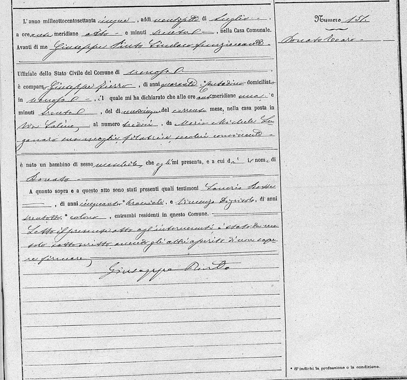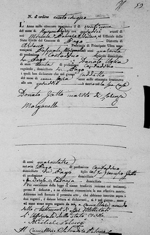 Donato Gatto was born in 1796 in Pago Veiano, Benevento, Campania, Italy. He and