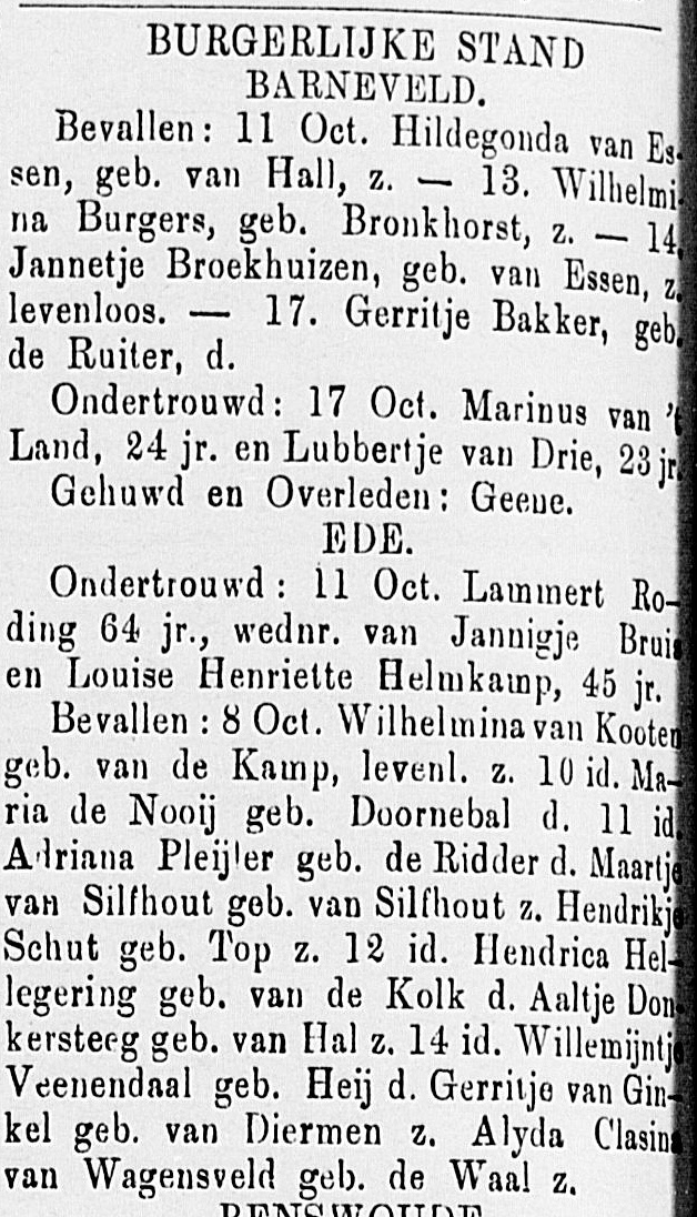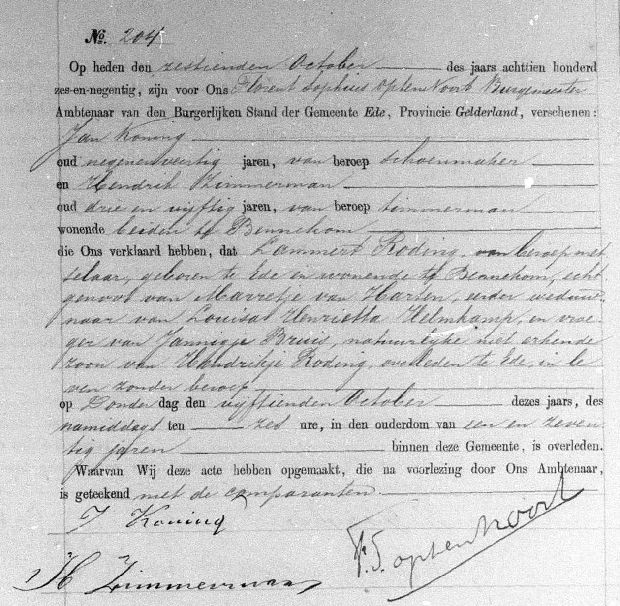 Lammert Roding were married on October 24, 1889 in Ede, Gelderland, Netherlands. She died on December 21, 1889, at age 45, in Bennekom, Ede, Gelderland, Netherlands.
