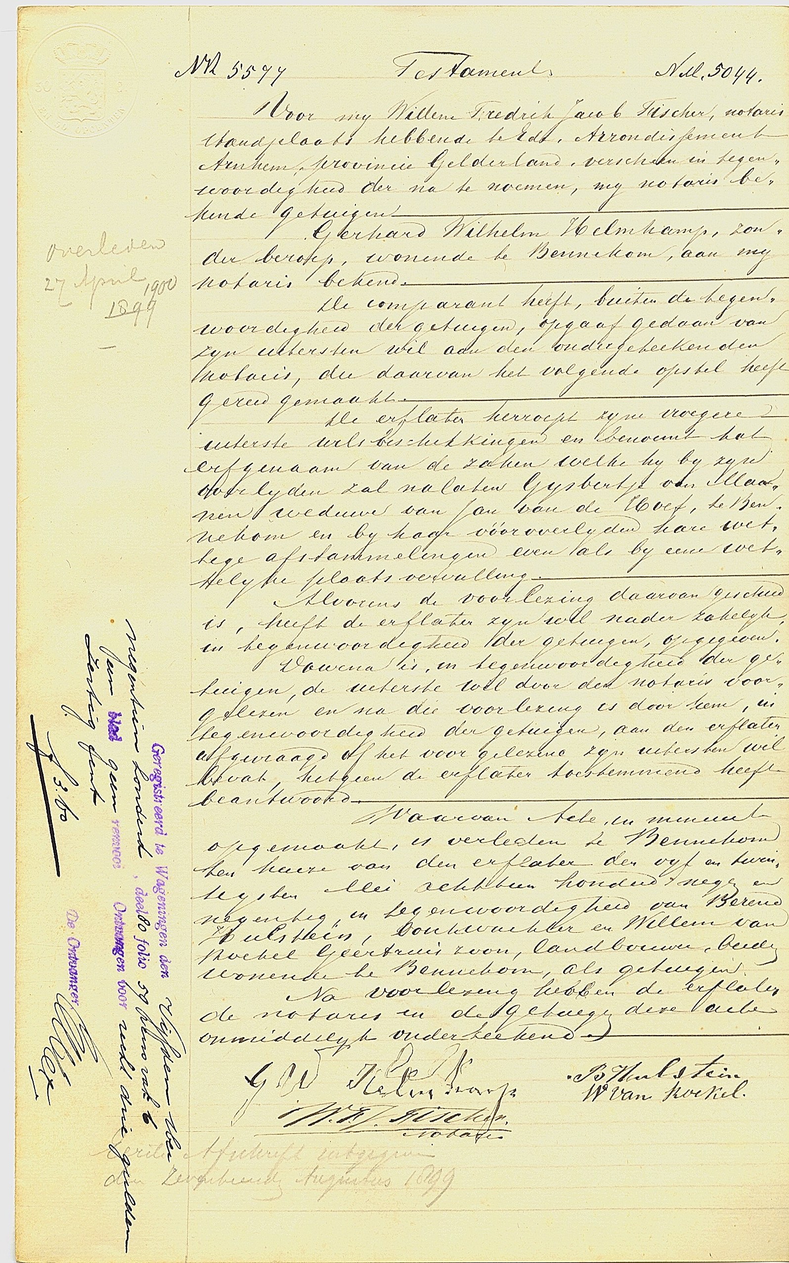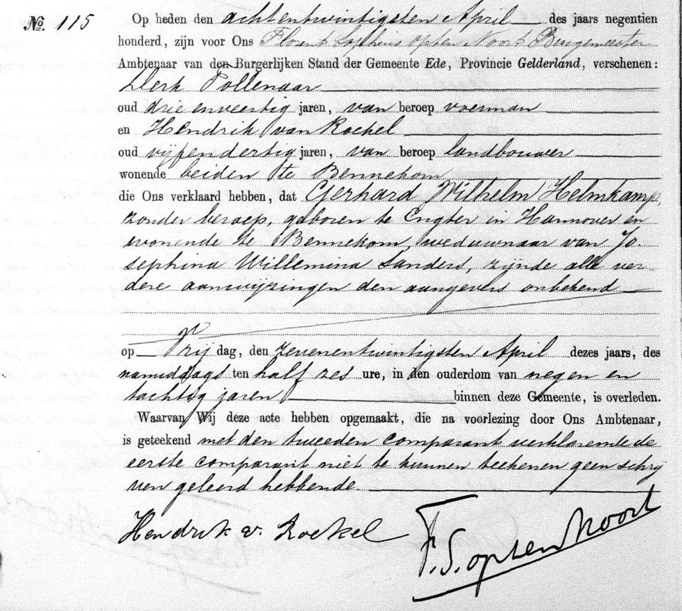 Willem Frederik Helmkamp was born on June 11, 1846 in Laren, Lochem, Gelderland, Netherlands. He died.