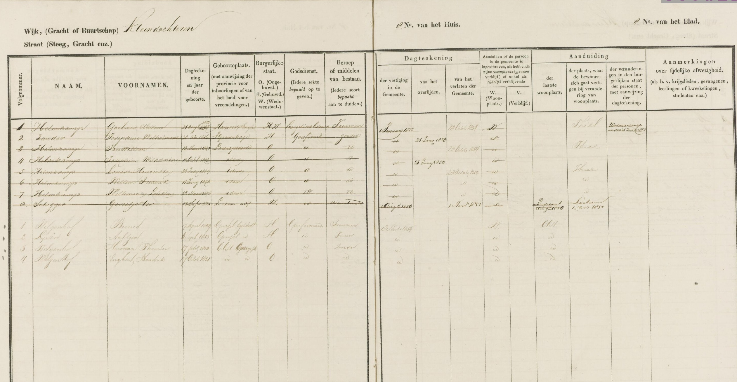 Helmkamp Family 1858 Census Tiel, Rivierenland, Netheralnds, Lines 1-5