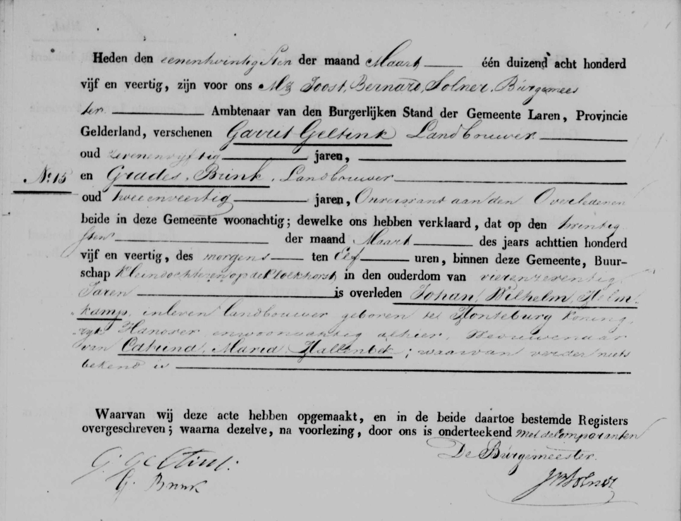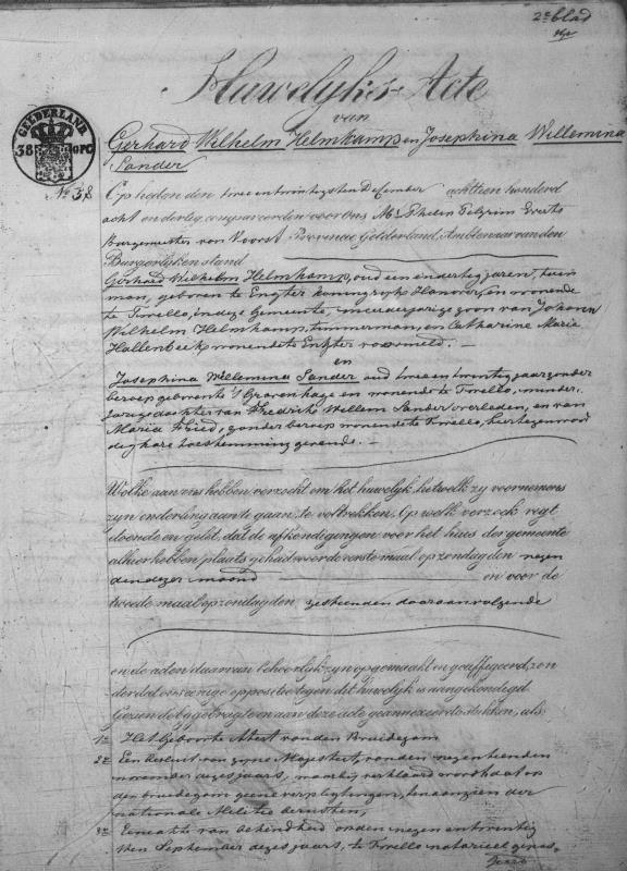 Gerhard Wilhelm Helmkamp were married on December 22, 1838 in Voorst, Gelderland, Netherlands. She died on June 21, 1850, at age 33, in Klein Dochteren, Lochem, Gelderland, Netherlands.