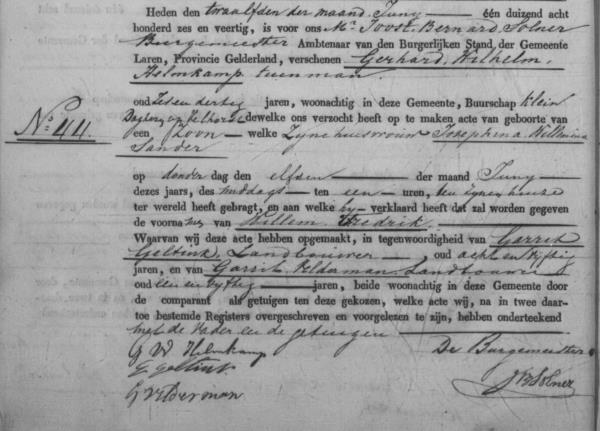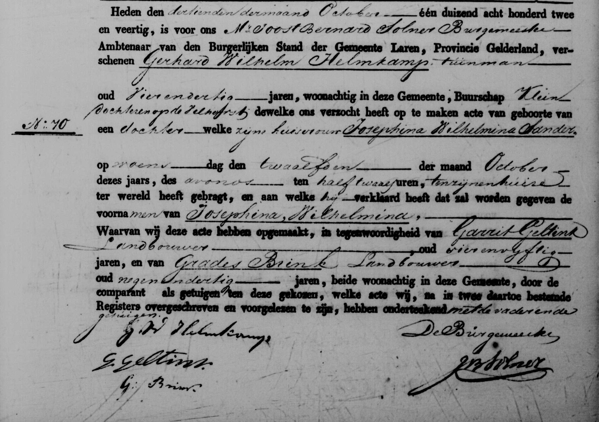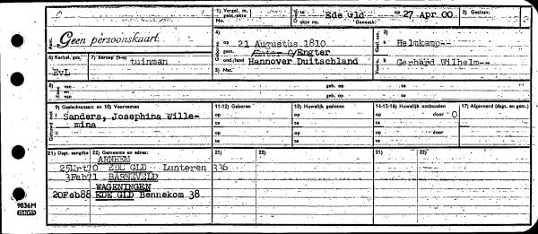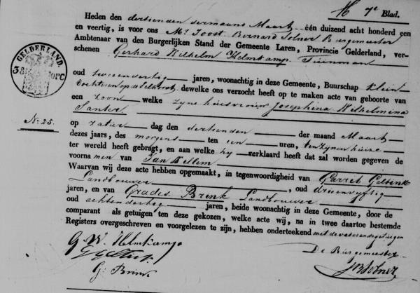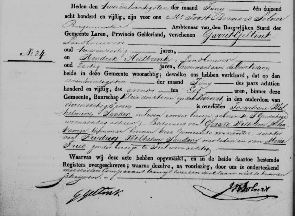 Josephina Wilhelmina Sander were married on December 22, 1838 in Voorst, Gelderland, Netherlands. He died on April 27, 1900, at age 92, in Bennekom, Ede, Gelderland, Netherlands.