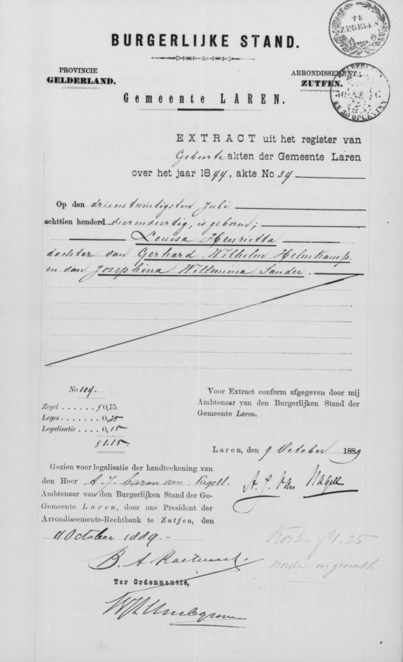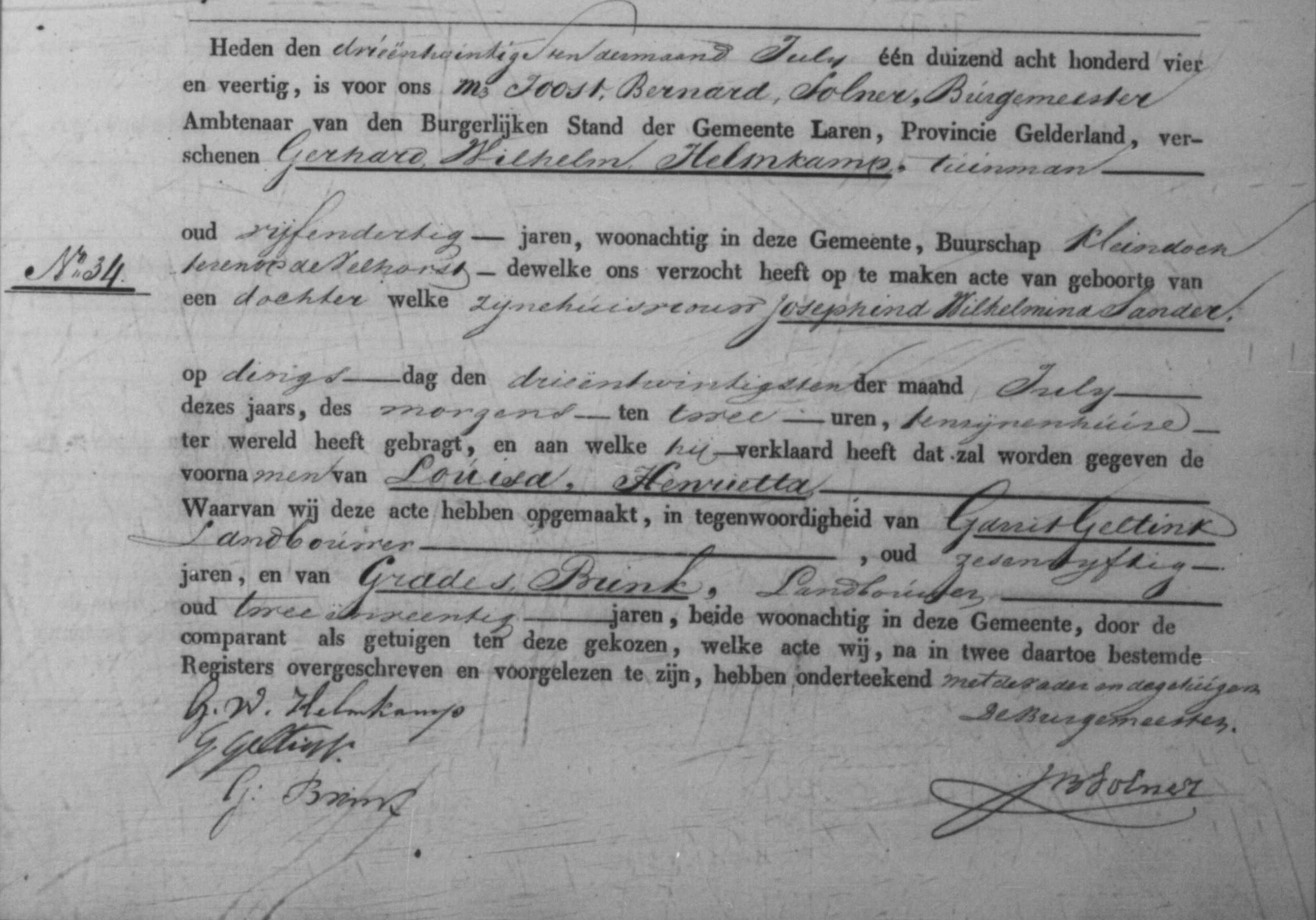 Louisa Henrietta Helmkamp was born on July 23, 1844 in Laren, Lochem, Gelderland, Netherlands. She and