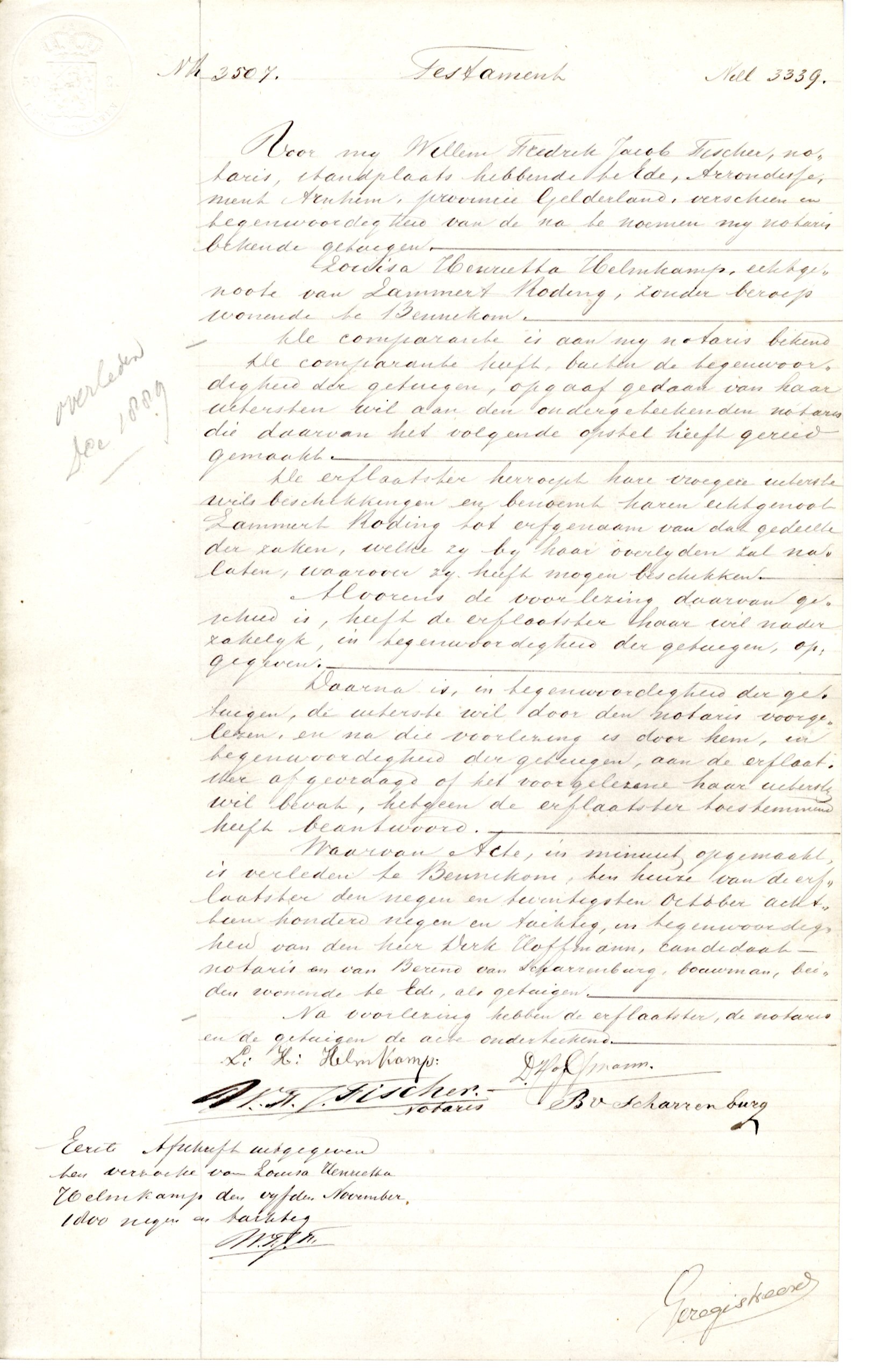 Louisa Willemina Helmkamp was born on March 11, 1840 in Klein Dochteren, Lochem, Gelderland, Netherlands. She died.