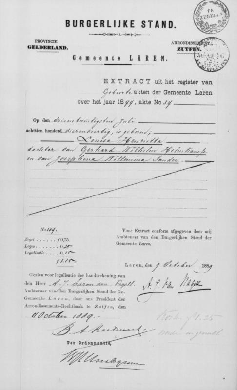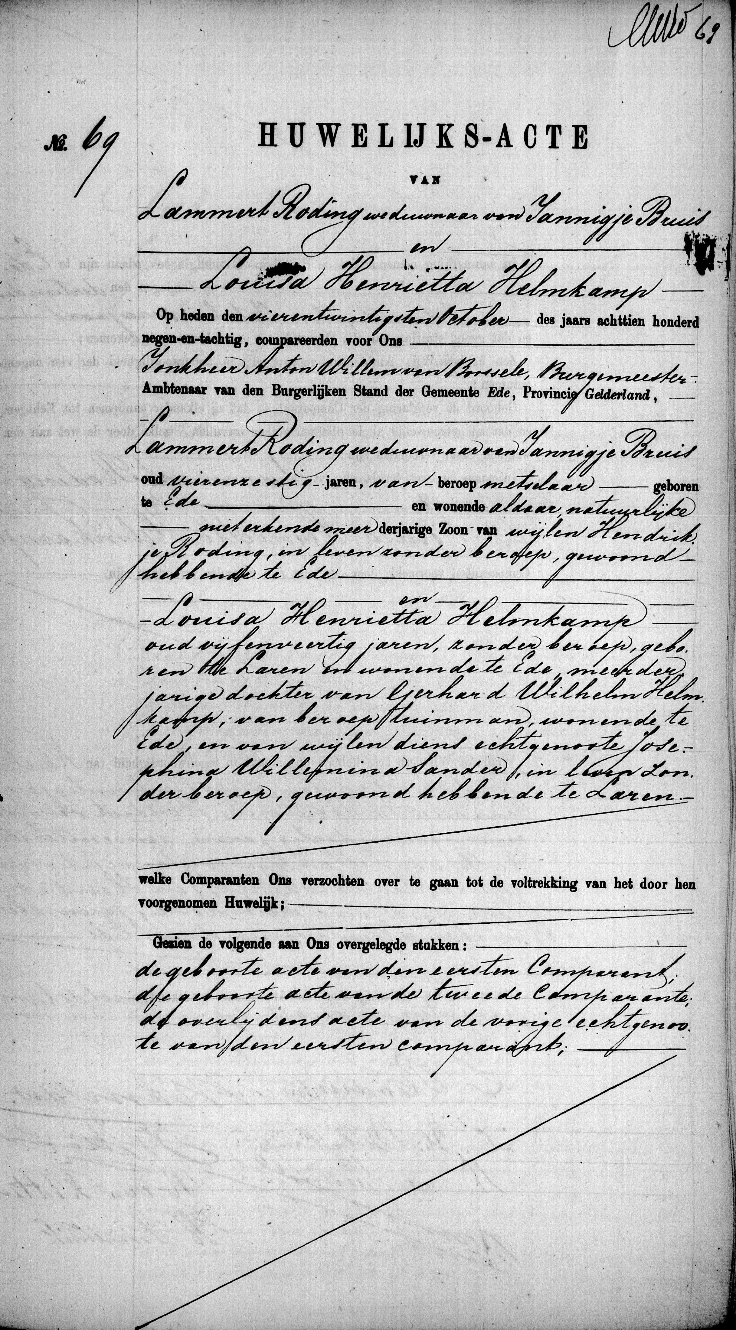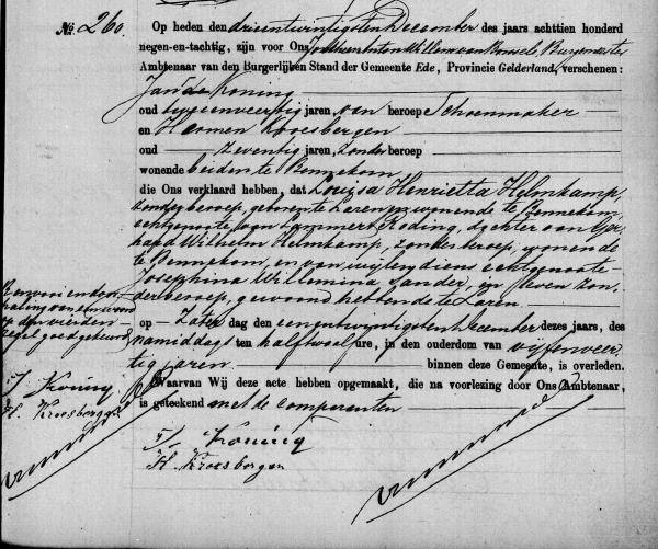 Louisa Henrietta Helmkamp were married on October 24, 1889 in Ede, Gelderland, Netherlands. He and