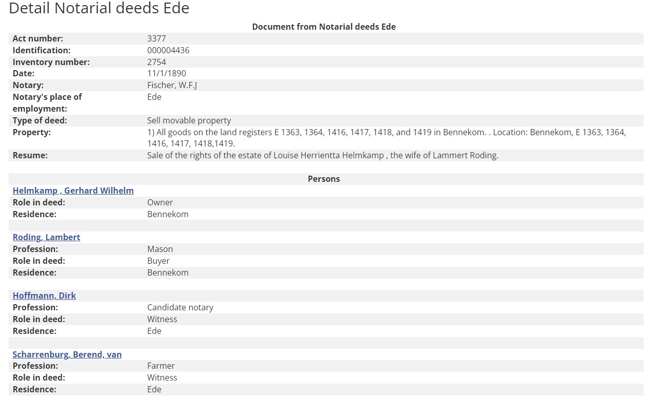 1890 Bennekom, Denmark Notarial Deeds Record Information