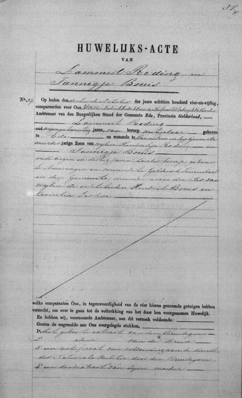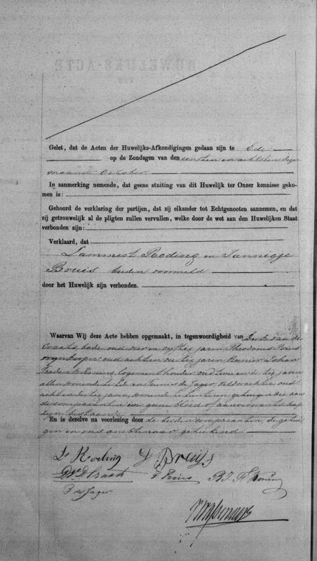 Jannigje Bruis were married on October 13, 1854 in Ede, Gelderland, Netherlands. He and