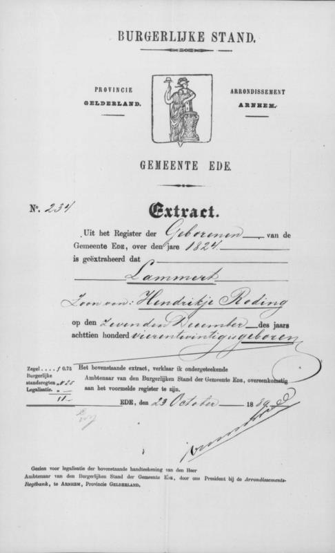 Lammert Roding was born on December 7, 1824 in Ede, Gelderland, Netherlands. He and