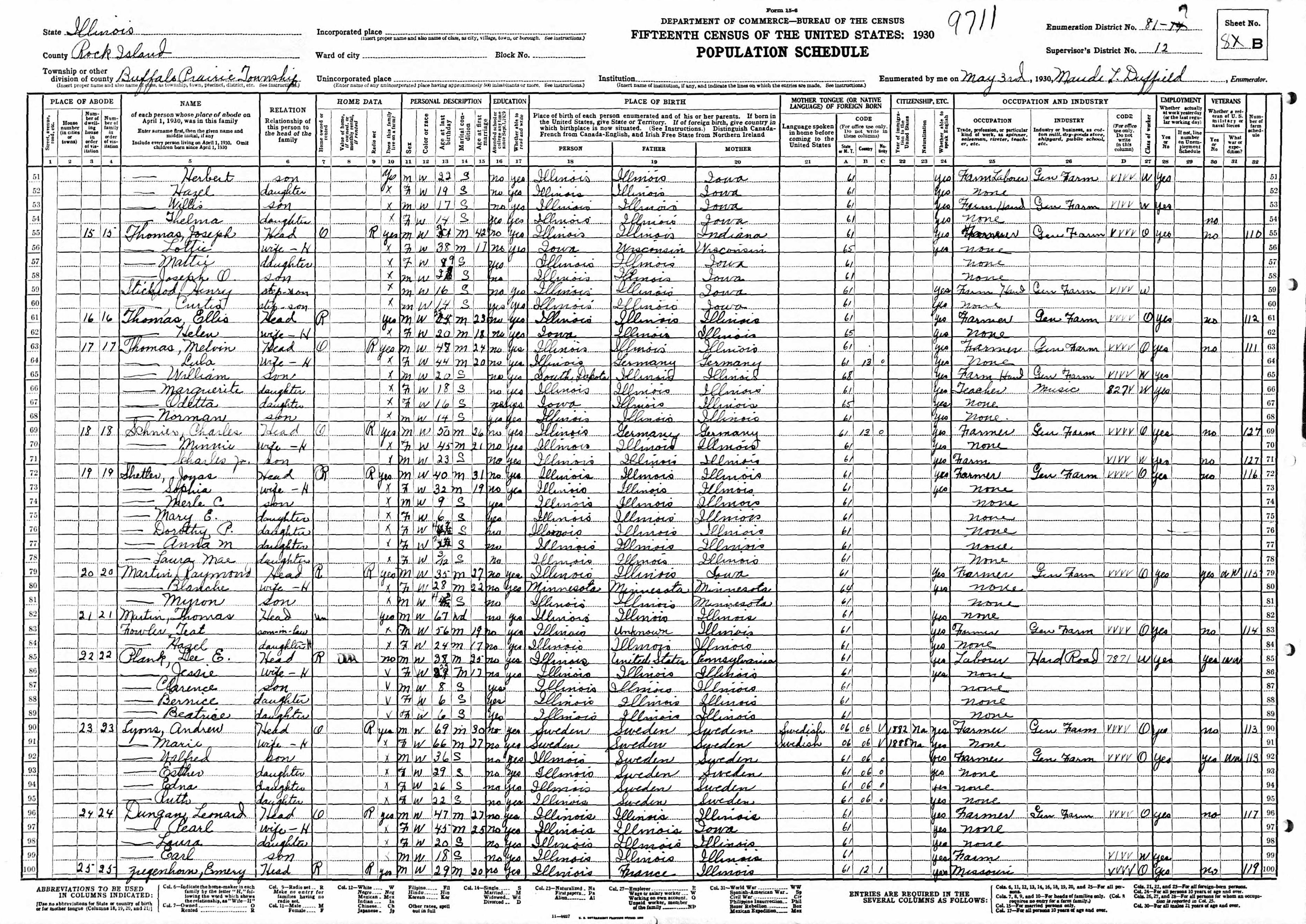 Lyons Family 1930 Federal Census Illinois, Lines 90-95