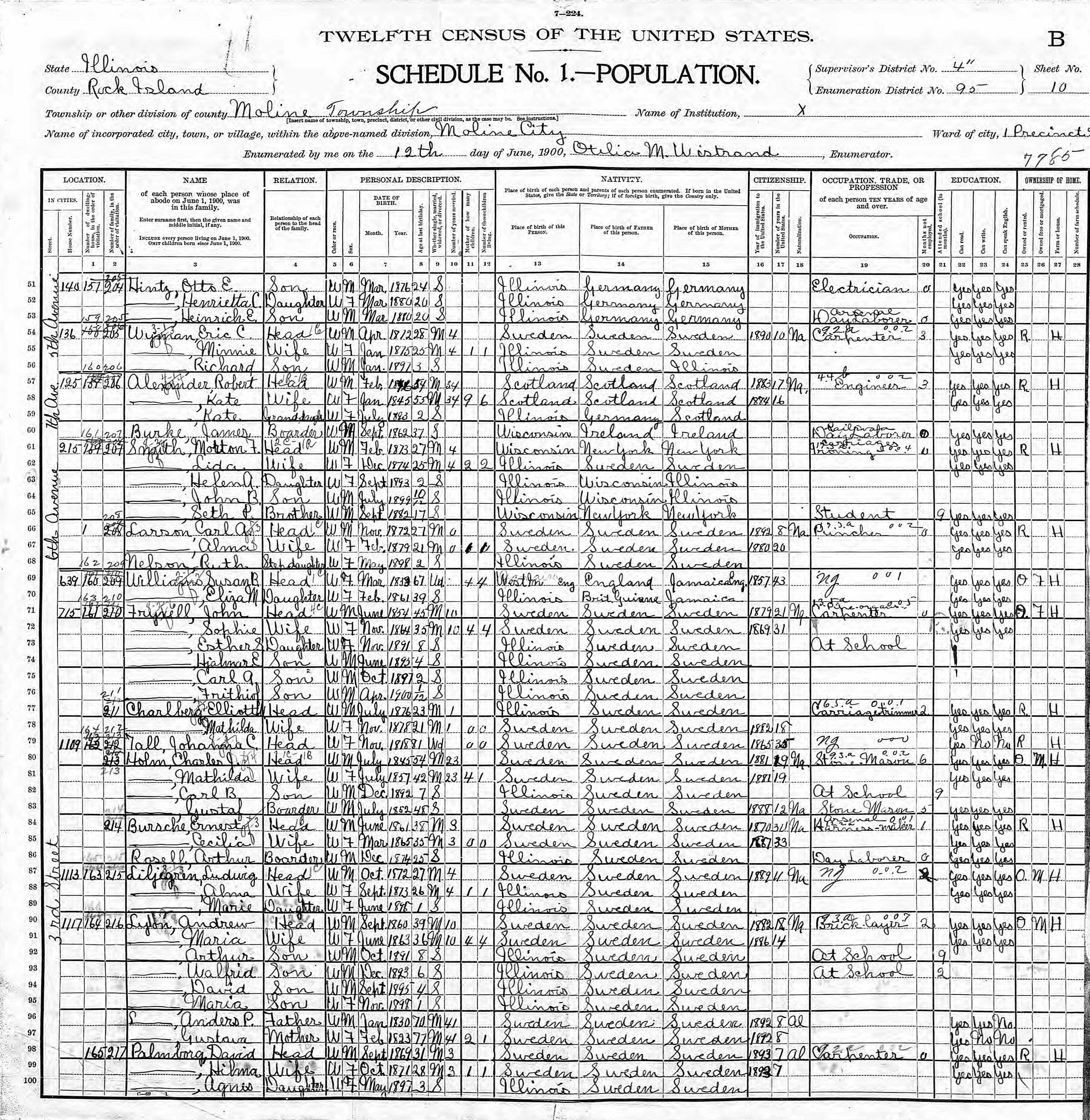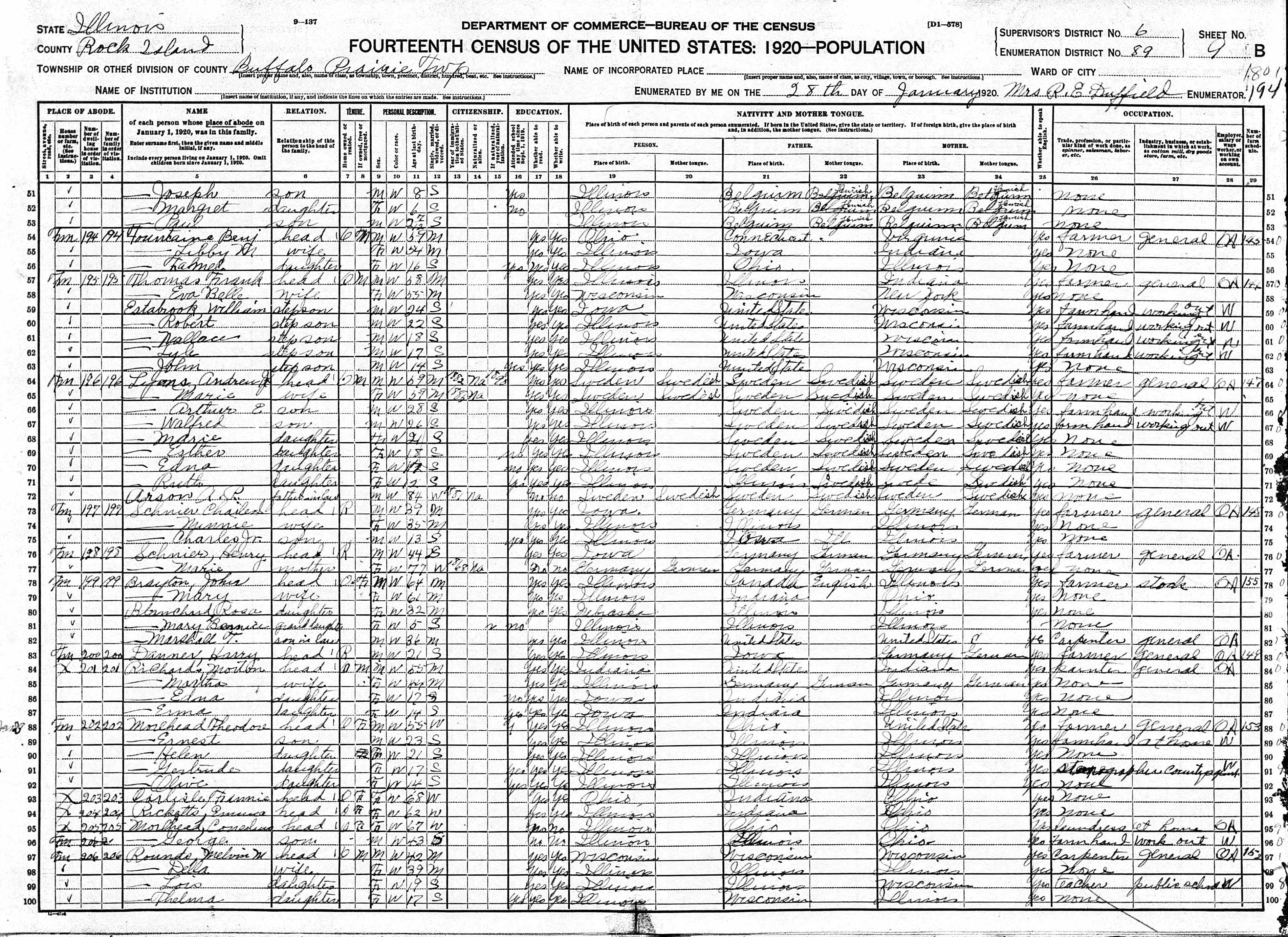 Lyons Family 1920 Federal Census Illinois, Lines 64-72