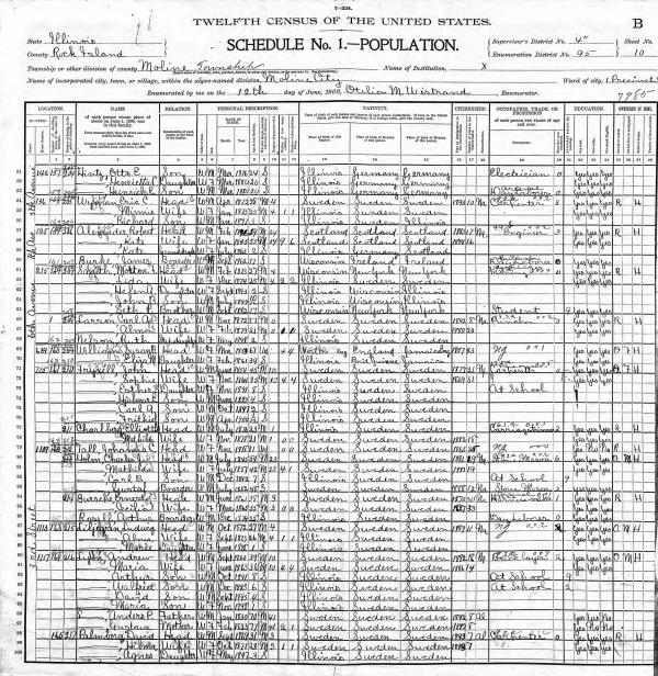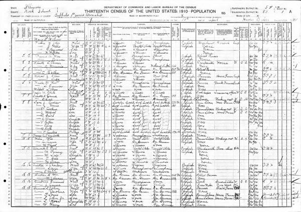 Lyons Family 1910 Federal Census Illinois, Lines 19-28